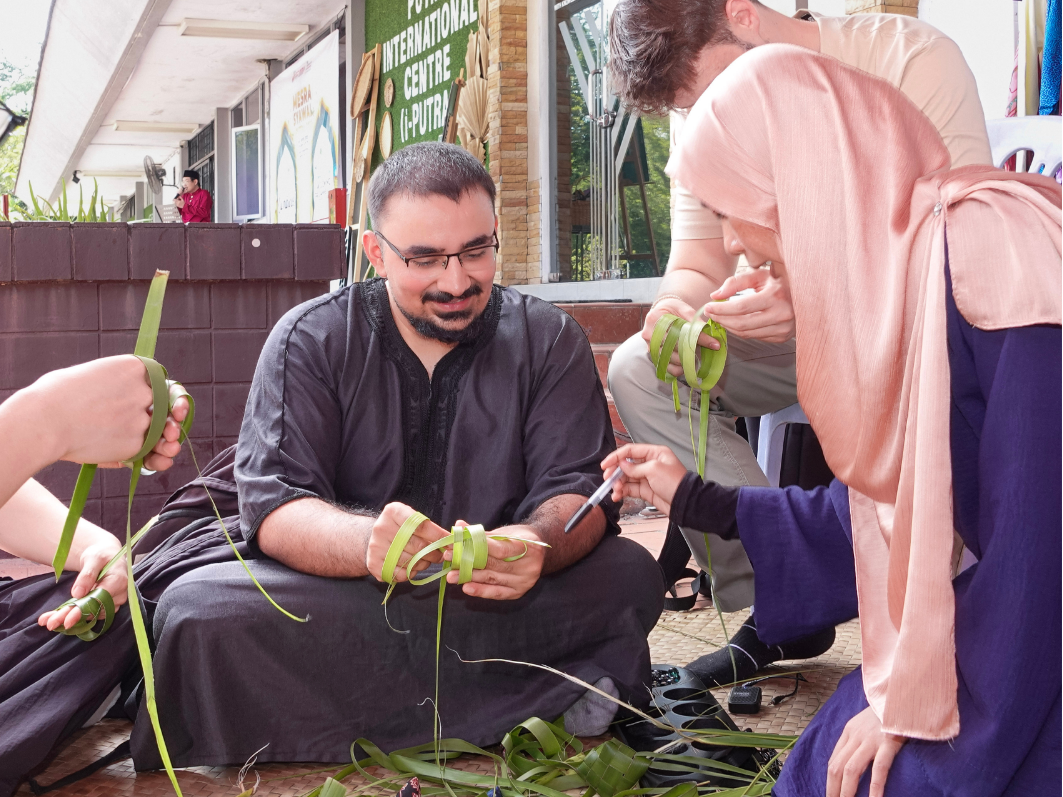 In pursuit of i-PUTRA’s ongoing commitment to promoting cultural appreciation and facilitating cross-cultural understanding, the programme afforded international students an immersive experience into Malaysian traditions. The array of activities included the weaving of ketupat (anyam ketupat), the opportunity to don traditional Malaysian attire, the preparation of honey cornflake treats, and participation in cherished traditional games such as congkak and batu seremban. Additionally, a thoughtfully designed photo booth provided a visual element, allowing attendees to capture and commemorate the festive moments.